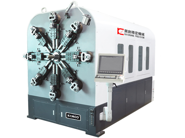 KCT-1260WZ 12-axis camless CNC versatile spring forming machine, referred to as 6.0mm camless spring machine, machining line diameter φ2.0-6.0mm, suitable for the production of various precision compression spring, tension spring, torsion spring, scroll spring, tower spring, flat wire springs, special-shaped spring and molding line and other products, widely used in furniture, mold, machinery, agricultural machine, motorcycle, automobile, railway and aviation etc..