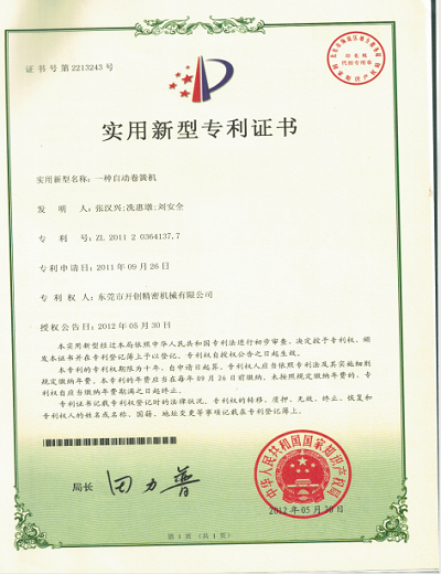 實(shí)用新型專利證書
